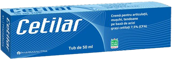 Cetilar este o cremă pentru articulații, mușchi și tendoane pe bază de acizi grași cetilați. Acesta ameliorează rapid durerile articulare și musculo-scheletale; este util pentru recuperarea funcțională în timpul reabilitării după inflamație articulară sau leziuni; este util în cazul leziunilor articulare la sportivi, pentru recuperarea mobilității normale.